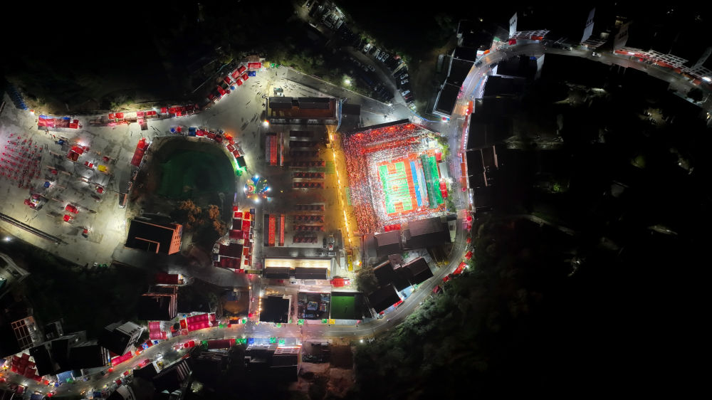从空中俯瞰,夜幕下的台盘村篮球场就像是一颗璀璨夺目的绿宝石,光芒所到之处,一派繁荣景象。这不禁令人感慨,一个篮球正在从方方面面改变一座县城,乡村体育的多元功能正在显现。