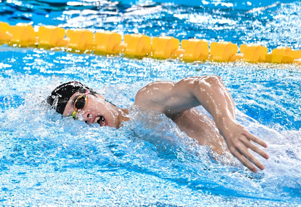 2月16日,中国队选手潘展乐在比赛中。新华社记者 夏一方 摄