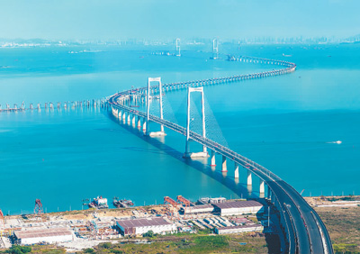“不过,大海也磨砺了施工团队的品格。”廖文龙说。历时5年多,伶仃洋大桥建设者克服了重重困难,在海面上挺起一道脊梁,创造多个世界之最: