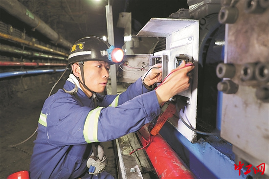 图为焦飞在井下检修设备。受访者供图
