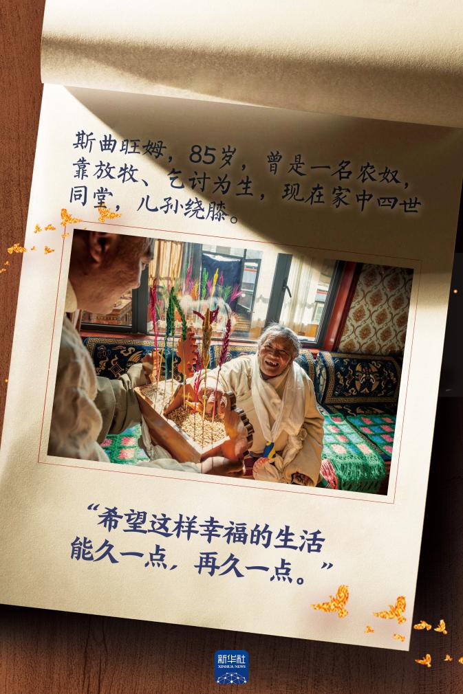 20世纪80年代,靠着国家的惠民政策,以及牲畜出栏积累的财富,斯曲旺姆家从土坯房搬进石木结构的新房。2019年,斯曲旺姆家再次更换住房,搬进了钢筋混凝土结构的新房。“没想到这辈子还能住上这么好的房子,以前农奴主的房子都不如我家。”她说。