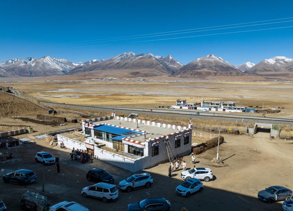 这是斯曲旺姆在西藏拉萨市当雄县公塘乡甲根村的家(2月10日摄,无人机照片)。新华社记者 孙非 摄