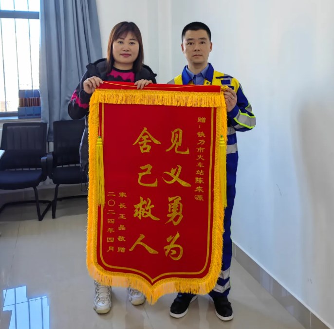 落水孩子家长为陈来源赠送锦旗。
