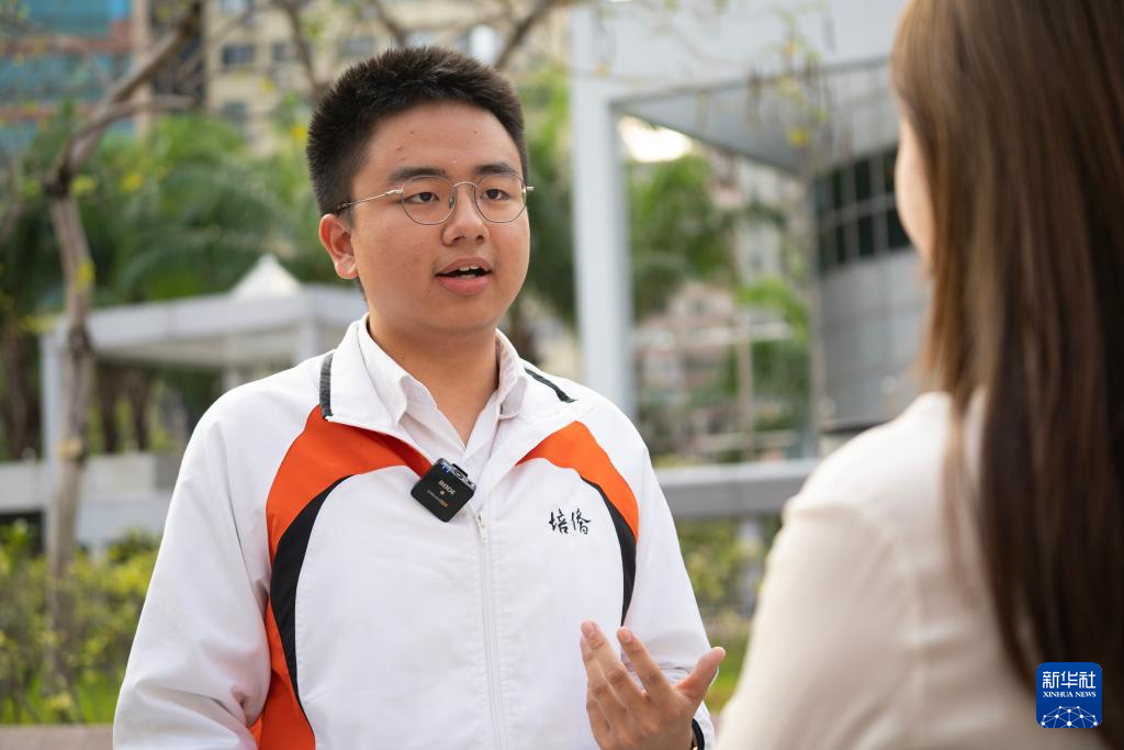 4月9日,香港培侨中学学生陈开元接受新华社记者采访。新华社记者 龙镜伊 摄