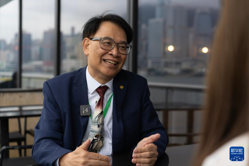 4月9日,“雪龙2”号访港执行委员会主席、香港红潮和水质领域研究专家何建宗接受新华社记者采访。新华社记者 龙镜伊 摄