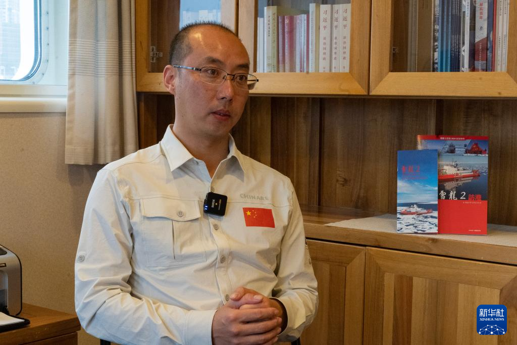 4月9日,中国第40次南极考察队副领队魏福海接受新华社记者采访。新华社记者 龙镜伊 摄