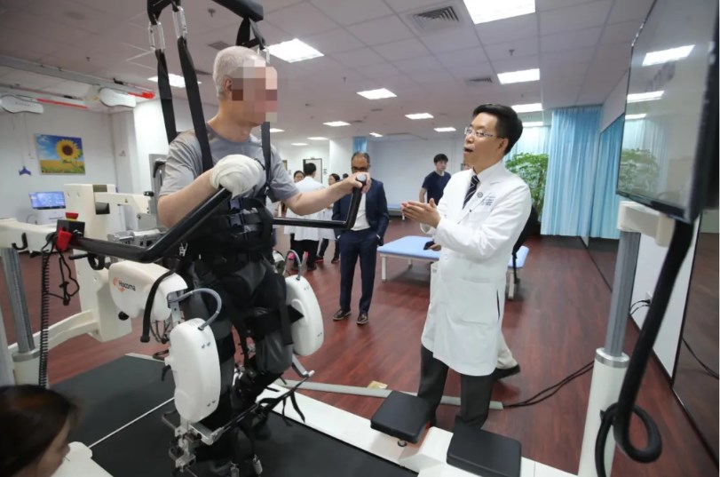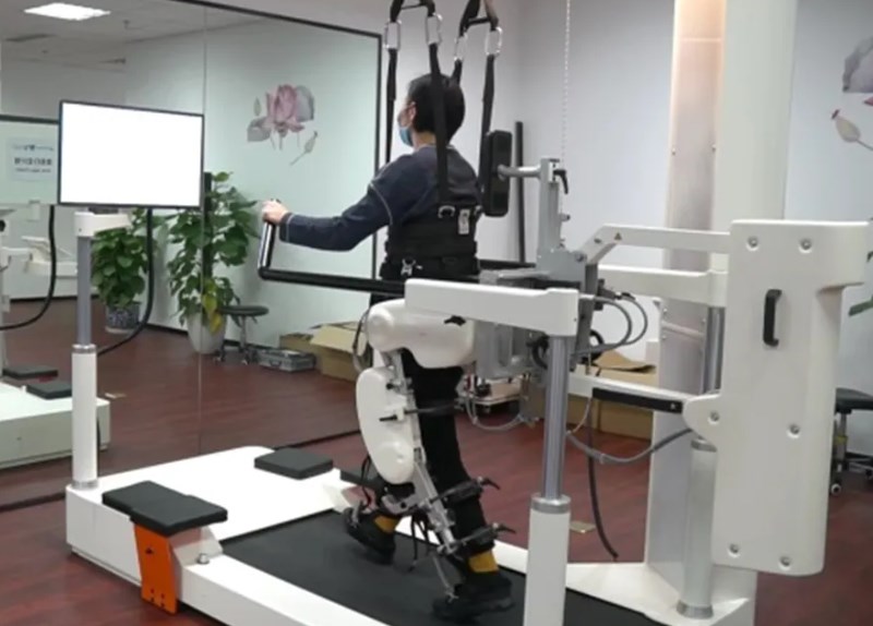 患者正在使用康复机器人进行步行训练