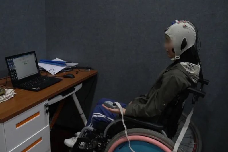 患者正在进行脑机接口康复治疗