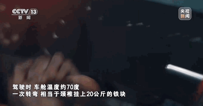 驾驶时,车舱温度高达70℃;踩下刹车踏板一次,相当于在健身房蹬起一块100公斤重的铁块;在平均200公里的时速中转弯,承受的离心力相当于在颈椎上挂一块20公斤的铁块……