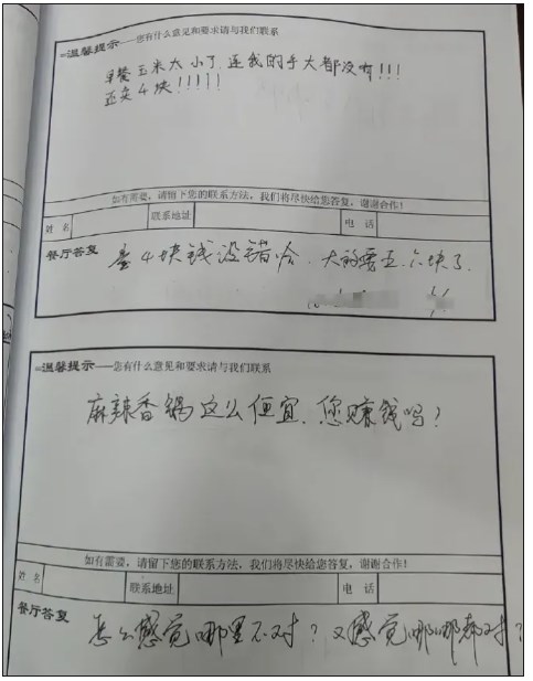 厦门大学食堂意见本