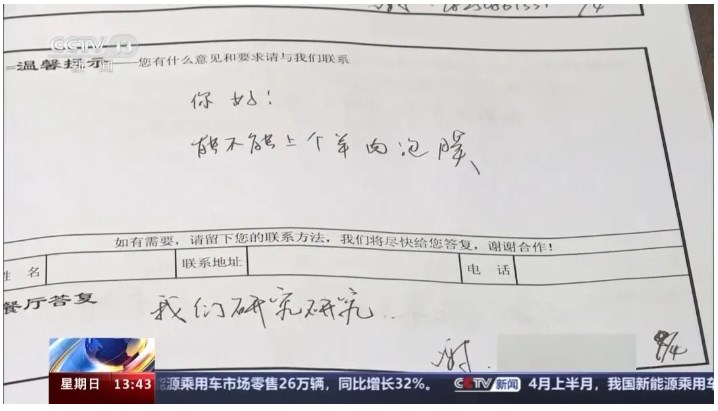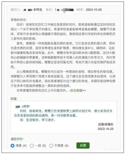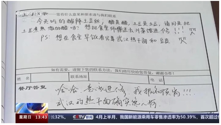 学生耿直的建议VS食堂爽快的答复