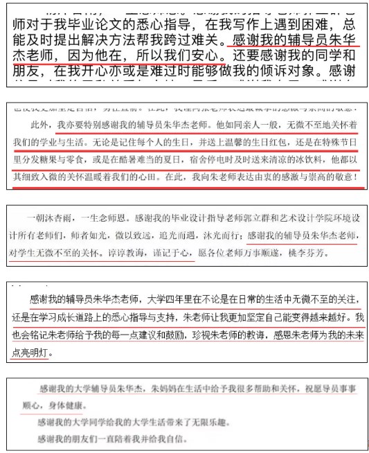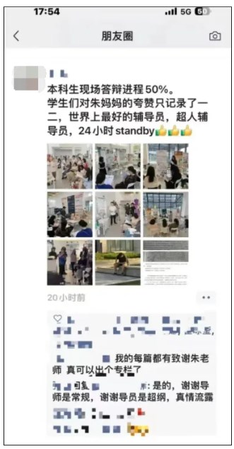论文评委老师将这一现象发到了自己的朋友圈后,引发多位评委的共鸣,“我这里几乎每篇致谢都有朱老师,可以开出个专栏了”。