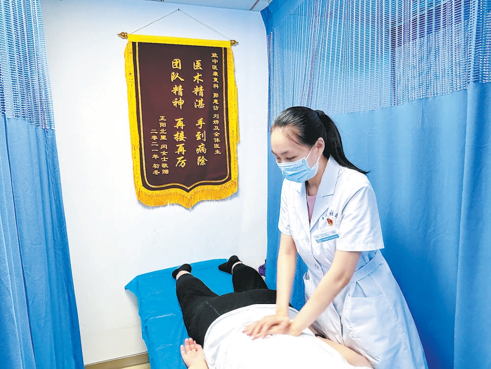 诊室里的患者年龄跨度特别大,年龄最大的有90岁,最小的却只有1岁半。刘娇花了不少心思,针对不同人群采用最适合的服务方式——与听力较差的老年人沟通时,提高音量、放慢语速,确保他们能听清;对于骨质疏松和有其他基础疾病的患者,她会调整好推拿手法的力度;对于年龄较小、哭闹不肯配合的患儿,她会用小玩具吸引他们的注意力,逐渐消除孩子就诊的恐惧心理,再开始治疗……