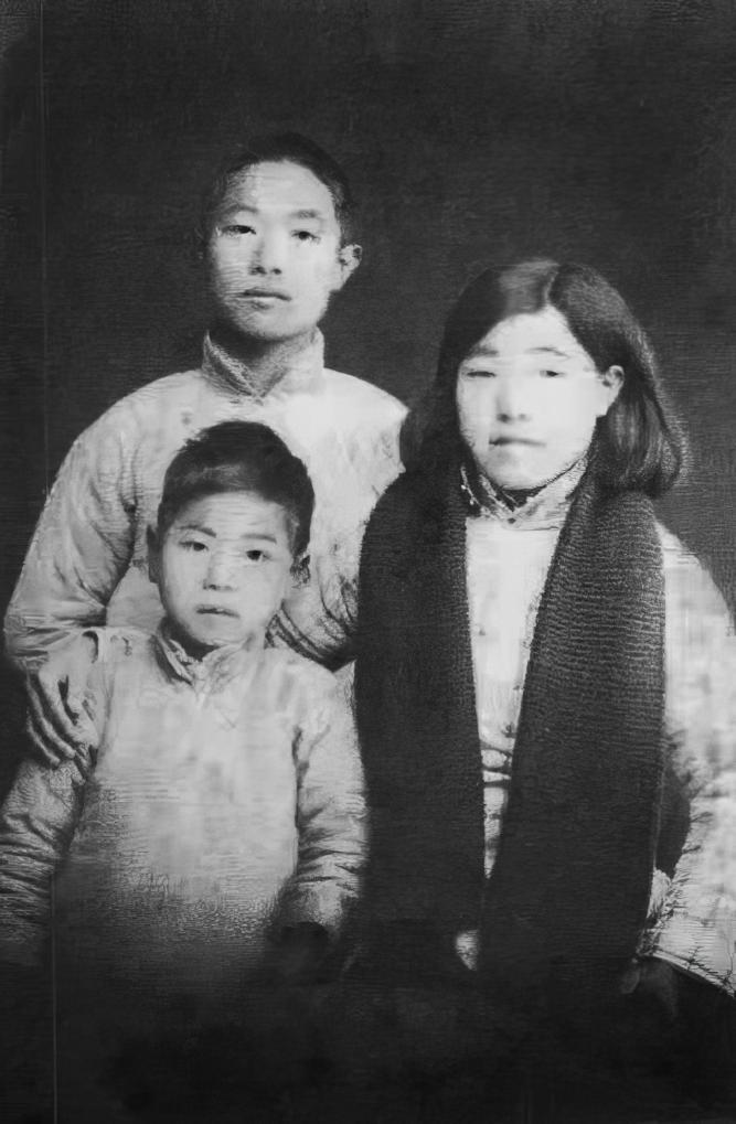 雷烨(项俊文)与妹妹项秀华(前右)、弟弟项秀文(前左)。新华社发(受访者提供)
