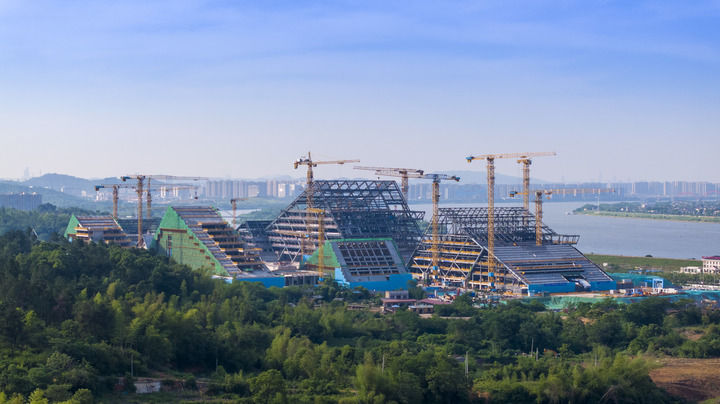 湘江之畔,湘江科学城首开区塔吊林立、建设繁忙。日前,首开区“五大建”——科技服务中心、科学交流中心、交易展示中心、湘江院士港、湘江创新港主体结构全部封顶,新的科研地标初现雏形。