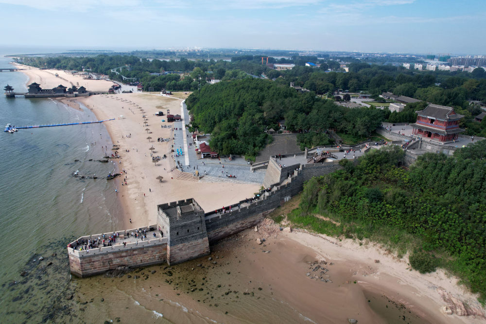 2024年9月19日拍摄的河北省秦皇岛市山海关区“老龙头”景区(无人机照片)。新华社记者 杨世尧 摄