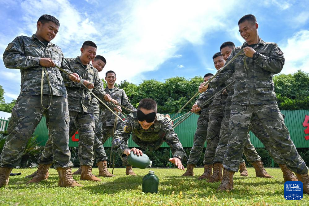 武警浙江总队宁波支队镇海中队组织官兵开展“步调一致”心理行为训练(6月21日摄)。新华社发(卫晨 摄)