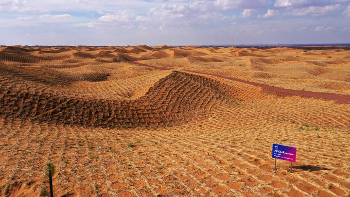 全境属于黄河“几字弯”攻坚战片区的宁夏,将腾格里沙漠固沙锁边工程作为重点项目扎实推进。如今,在“辽阔如天”的腾格里沙漠东南缘,一道“绿色长城”蜿蜒绵亘,在黄河上游筑起一道重要生态屏障。