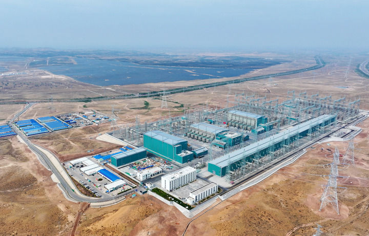 6月29日拍摄的“宁电入湘”工程宁夏中卫市中宁换流站(无人机照片)。新华社发(袁宏彦摄)