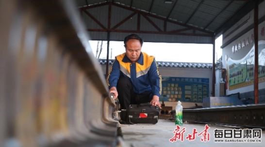 黄涛进行钢轨探伤仪器测试。(图片来源:每日甘肃网)