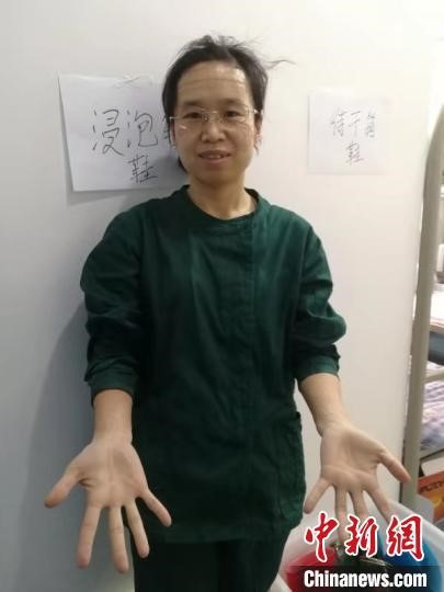 脱掉防护服后的姜凯丽。图片来源:中新网