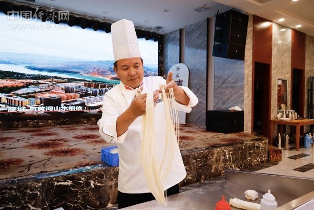 这些年,除了不断提高自己的拉面技艺,韩玉龙还多次在重大场合“露一手”。2020年,韩玉龙在中国青海绿色发展投资贸易洽谈会上用一团面拉出1024根面条,至今全国无人能超越;他首创将拉面穿进针眼,并且一次性能穿46根;他还走出国门到俄罗斯、埃及、迪拜等国家和城市展示青海拉面师傅的高超技艺。