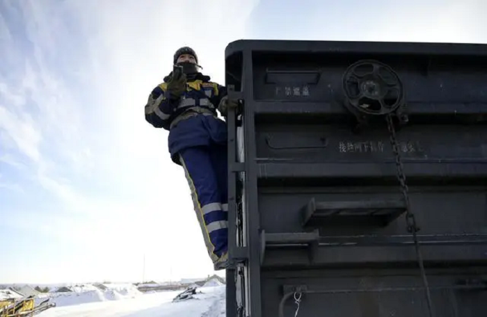 2023年12月25日,在国铁哈尔滨局集团有限公司加格达奇车务段漠河站,调车长在工作中。新华社记者 石枫 摄