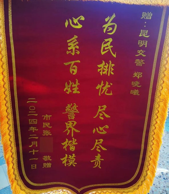 近日,云南省昆明市公安局向交警郑晓曦进行了表彰,戴上奖章的郑晓曦说:“我就是做了一件该做的事情,只是刚好被看到了而已”。