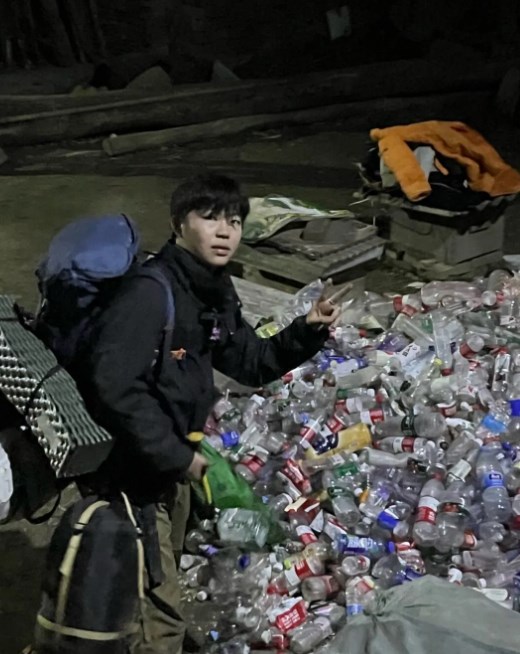 他捡了将近300个塑料瓶
