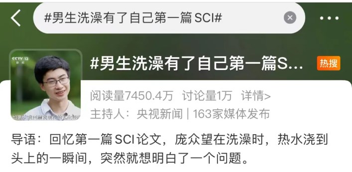 2024年全国高考期间,一段对清华学子庞众望的采访视频引发网络热议。近日,庞众望接受媒体采访,说起自己的第一篇SCI,话题一度冲上热搜。
