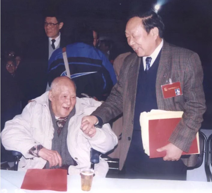 1998年12月,李德仁与导师王之卓在学术活动上。(图片来源:武汉大学)