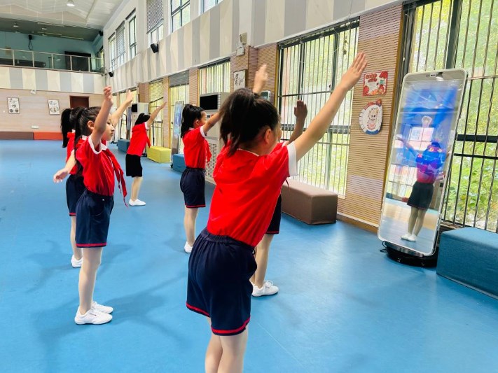 合肥市师范附属第二小学的体育“魔镜”。新华社记者 周畅 摄