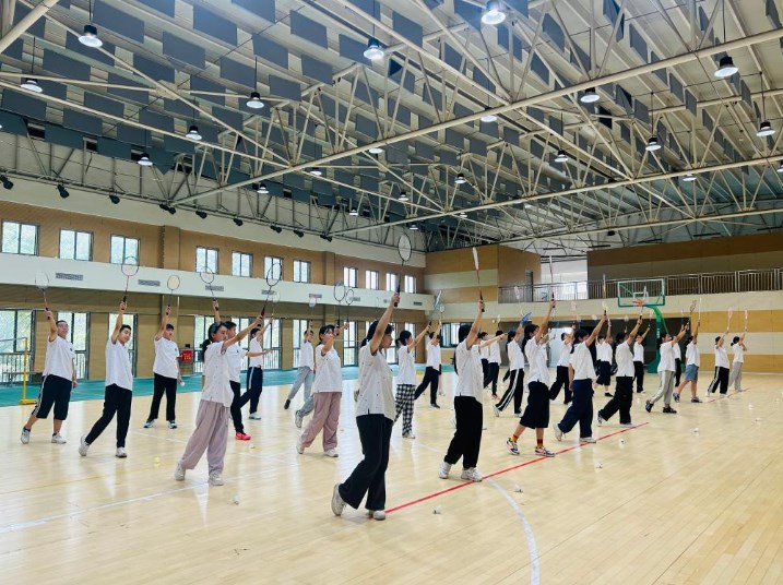 合肥市第四十八中学滨湖校区的羽毛球课。新华社记者 周畅 摄