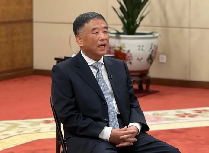 6月6日,在北京航天飞行控制中心,嫦娥六号任务总设计师胡浩(右)和探月与航天工程中心主任关锋在交流交会对接进展情况。