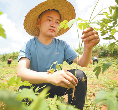 刘杰在查看前胡的生长情况。何志刚摄(人民视觉)