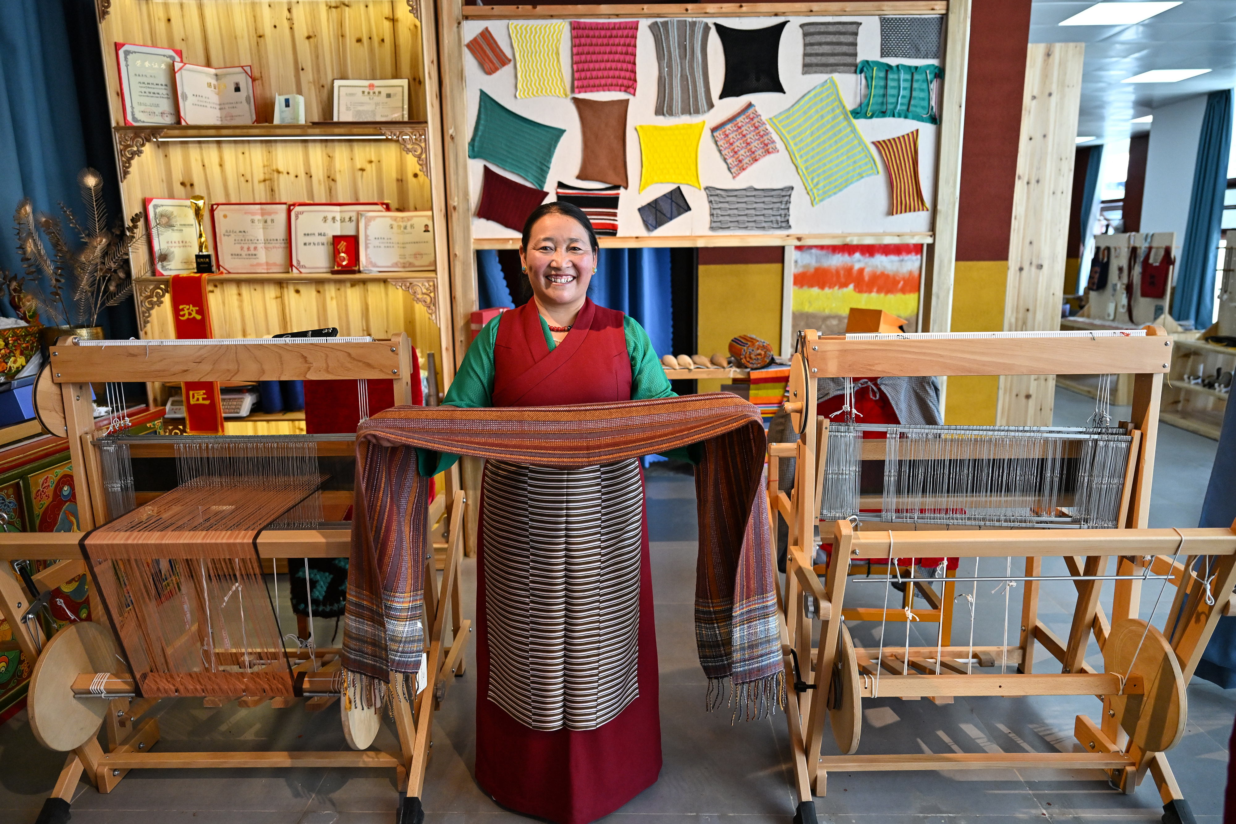 氆氇,不再仅仅是西藏传统文化的载体,更是高原儿女同世界连接的纽带。氆氇舒展,铺开群众幸福路;羊绒细润,编织氆氇“世界梦”。