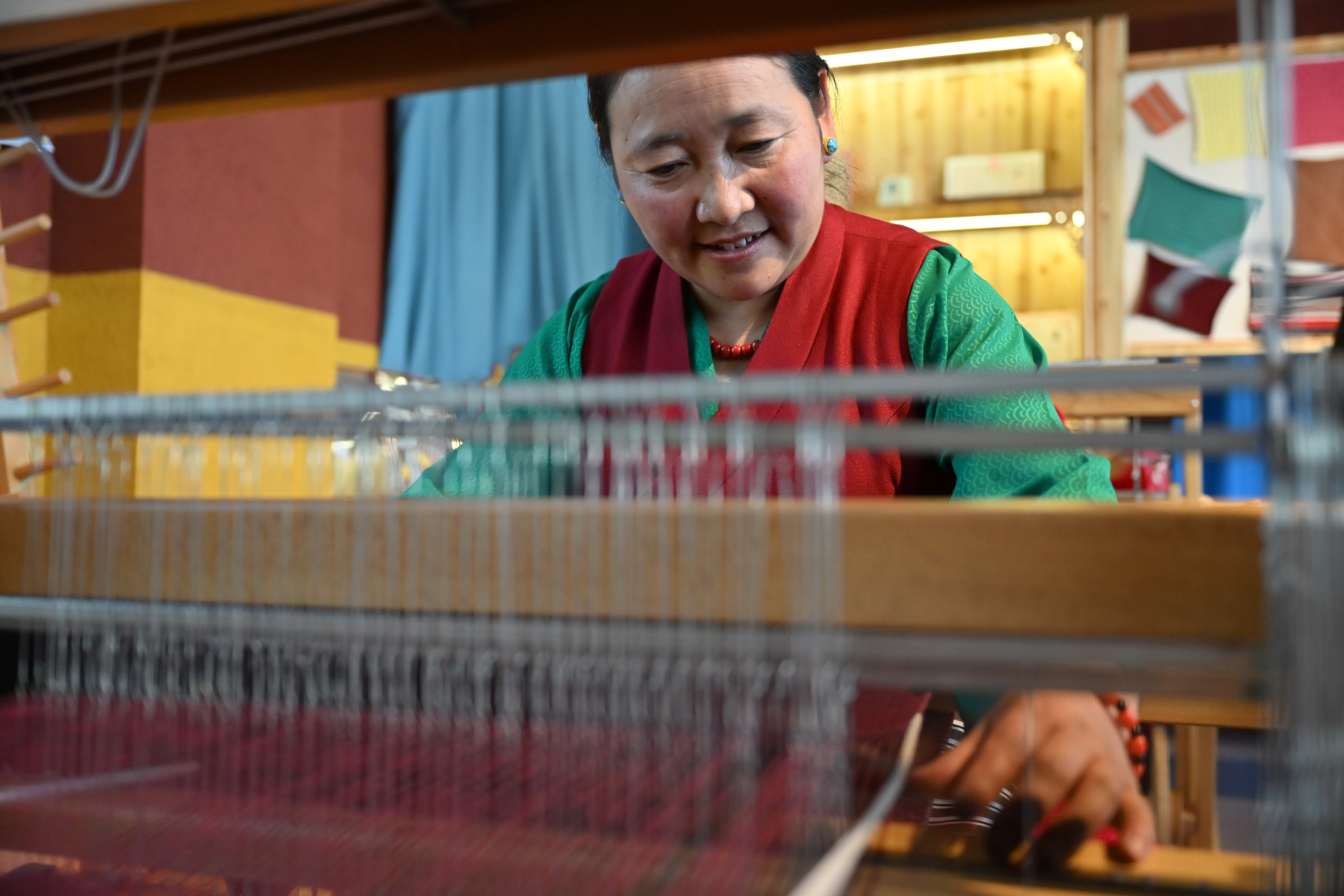 走进江孜县阿佳格桑氆氇农民专业合作社,织机“咔嗒”作响,氆氇的纹理在手工艺人的手中逐渐显现,她们用自己的双手编织出了更加美好的未来。
