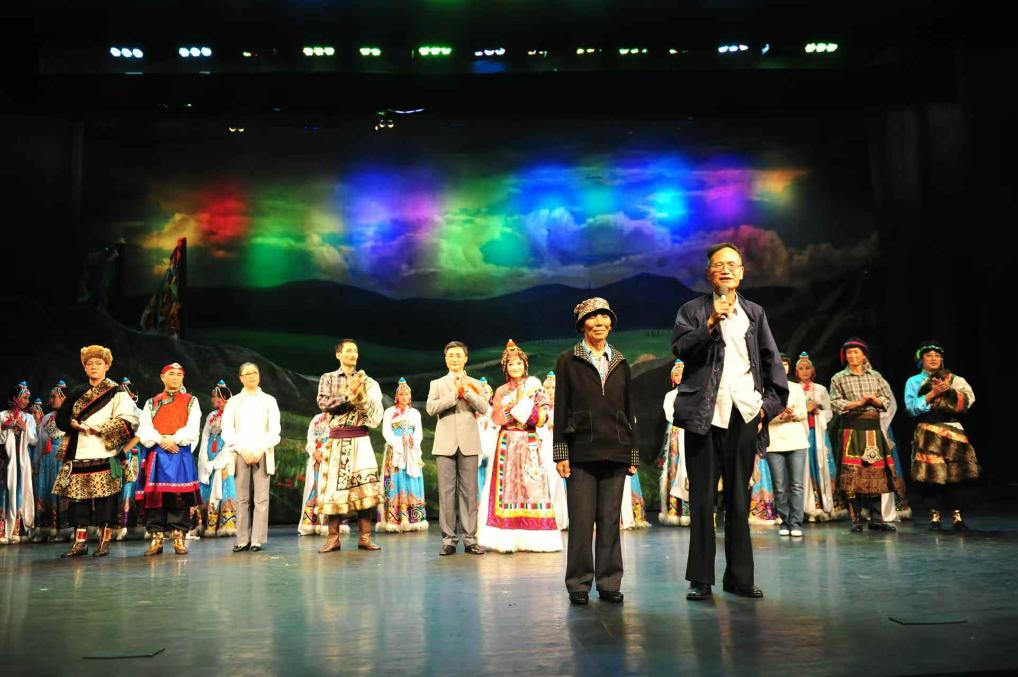 2012年9月30日,王万青夫妇在京剧《草原曼巴》演出现场。新华社发(刘畅摄)