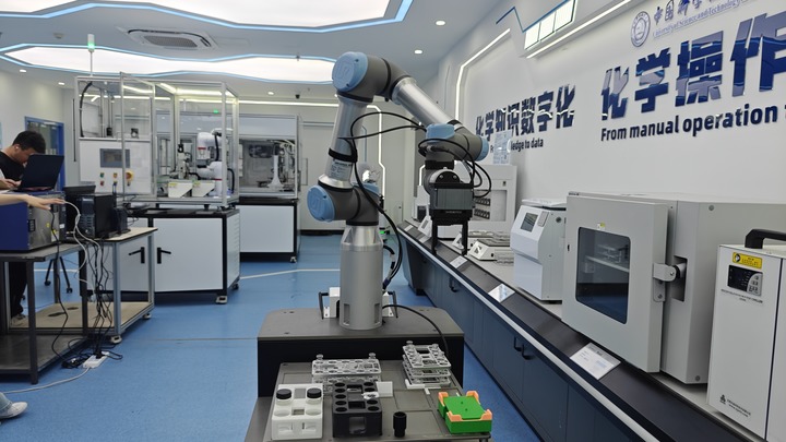 新华社合肥5月5日电(记者陈诺)一条长长的实验桌前,一位体重200公斤的“化学家”拖着“轻盈”的步子,抬起结实的双臂抓取试管,依次走过液体进样台、磁力搅拌台、烘干工作台,进行样品称重、搅拌、离心、烘干……在位于安徽合肥的中国科学技术大学一间实验室里,有这样一群“机器化学家”,用夜以继日的劳动,“庆祝”又一年的“五一”国际劳动节。