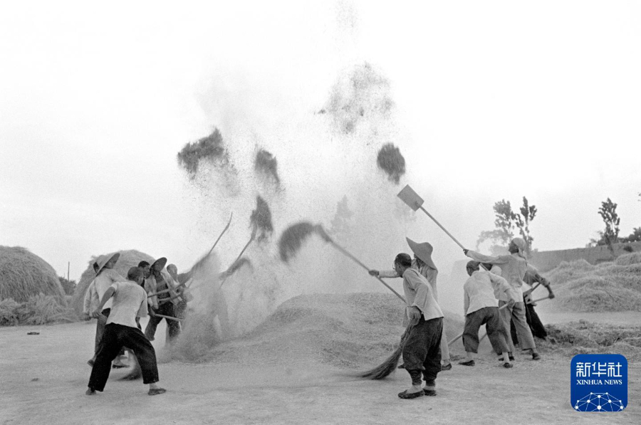 1957年,陕西华阴中苏友好农业社的社员们在扬场。新华社记者 姜国宪 摄
