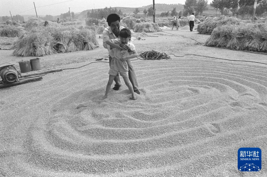 1993年在山东临朐杨子河乡拍摄的晒麦场。 新华社发