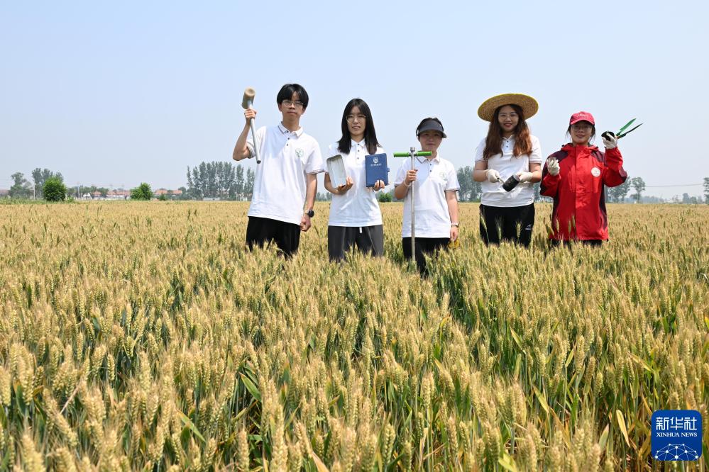 2025年5月26日,河北省曲周县傅庄科技小院的学生在麦田里。2009年,中国农业大学在河北省曲周县探索成立科技小院,把研究生派驻到农业生产一线,研究解决农业农村发展中的实际问题,培养农业高层次人才,服务农业农村现代化建设。新华社记者 牟宇 摄