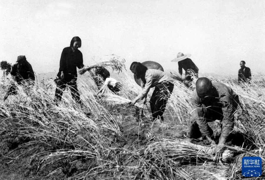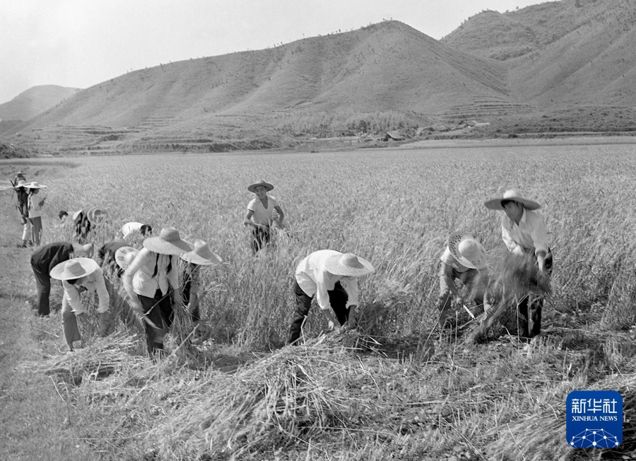 1951年6月,四川巴县(现重庆巴南区)大山村的农民在收割麦子。新华社发(袁毅平 摄)