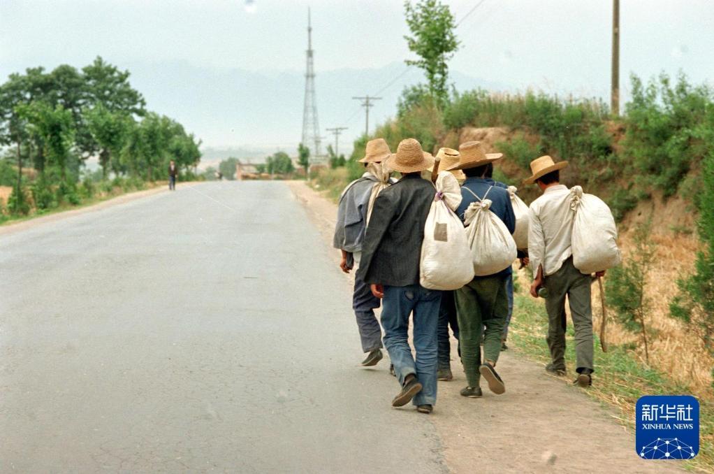 1997年,甘肃麦客结伴而行。在20世纪90年代,虽然麦收机械化程度越来越高,但是受价格和习惯等因素的影响,甘肃麦客仍拥有相当大的市场,联合收割机不便操作的山区还是主要靠麦客收割。新华社记者 彭张青 摄