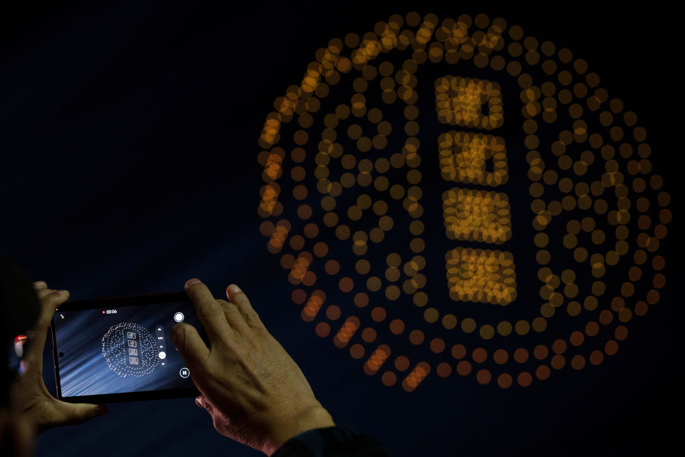 10月4日晚,在浙江省金华市武义县花田美地景区,精彩的无人机表演为游客呈现了一场视觉盛宴。新华社发(张建成摄)