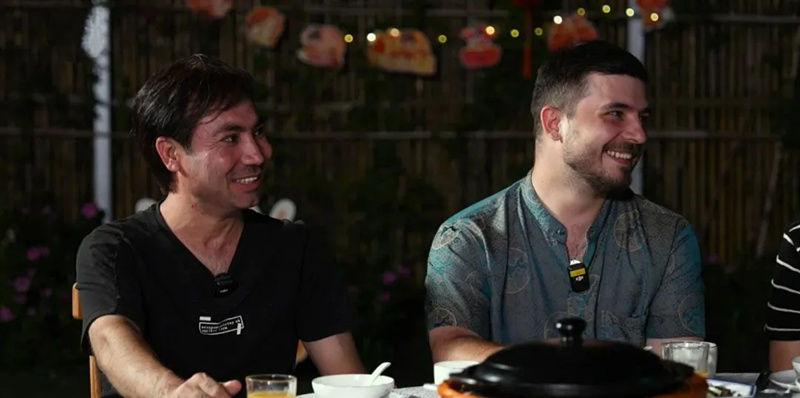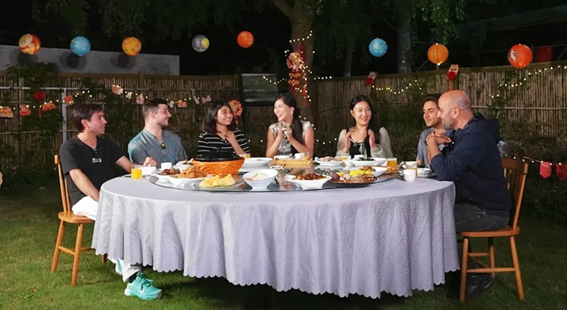 中秋节讲究天圆人圆,团圆饭是重头戏。夜幕降临,几十盏花灯点亮整个小院,一场融合了松江传统佳肴与外国嘉宾家乡美食的团圆宴将气氛推向高潮,大家举杯同庆,互致祝福。圆桌上,众人围坐畅谈各自国家的团圆习俗。“妈妈是印度人,我们会吃咖喱鸡肉,也会准备火鸡和三明治。”英国姑娘Selda burhan Muslu分享道。她的爸爸Michael Robert Burhan则重新理解了“团圆”的含义:“团圆不只是与家人在一起,也可以是与喜欢的朋友们在一起,我们今天这些人,就像相亲相爱的一家人,坐在这里,就是团圆。”