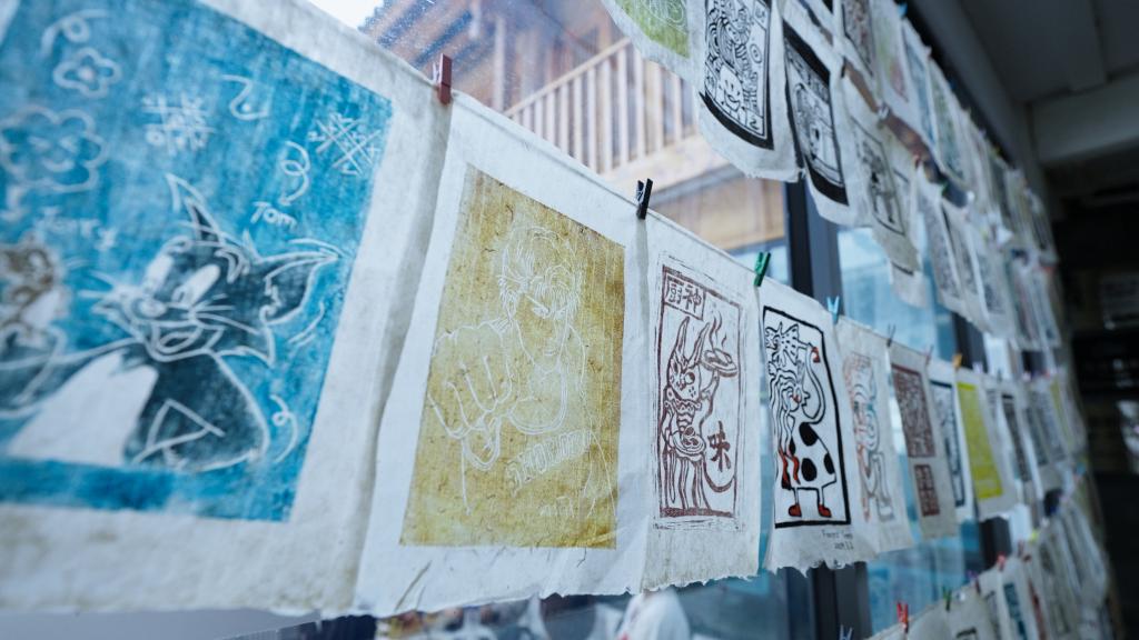 甲马以刀为笔,镌刻古老祈愿;扎染则以线为缚,在棉布上染出诗意。在匠志集的百工馆里,陈列的一件件扎染制品吸引着众多游客驻足。