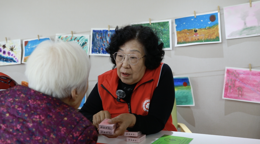 暖阳洒在老年公寓的院子里,80多岁的张奶奶接过李学花递来的两个科普物件——一本印着“动物产品质量鉴别”的小册子,一副画着肉类挑选方法的扑克。
