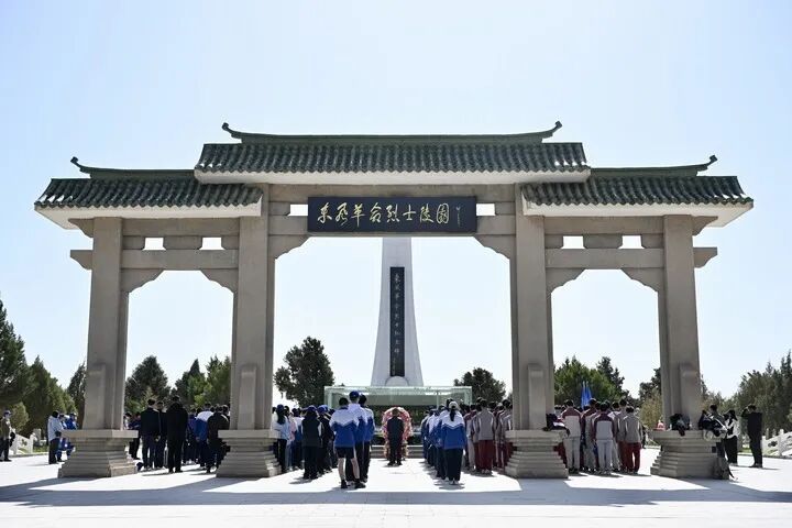 学生们在东风革命烈士纪念碑前缅怀先烈。新华社记者 马金瑞 摄