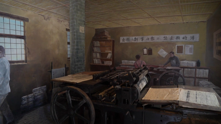 他能事无巨细、滔滔不绝地讲述这段历史:“共有140多名新闻战士,30个警卫战士”“当时是手摇驱动的印刷机”……